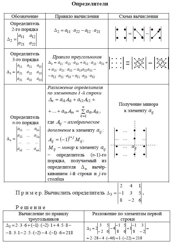 Определители. Определитель квадратной матрицы, его основные свойства. Критерий равенства определителя нулю. Формула разложения определителя матрицы по строке / столбцу.